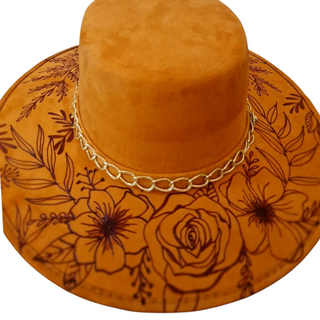 Sombrero vaquero texana de gamuza con aplicación de cristales, piedras, cadena e iniciales